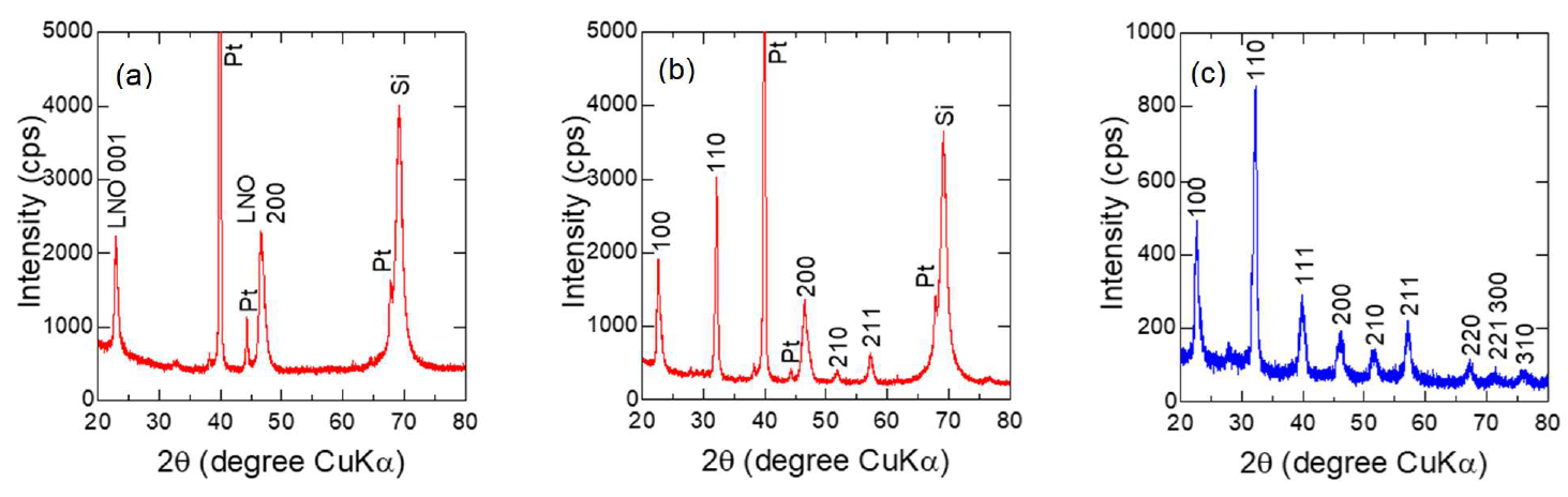 LaNiO3/Pt/Ti/SiO2/Si(100)基板上に作製したBiFeO3 膜のX線回折スペクトル