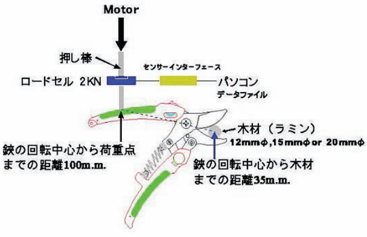 この試験機は剪定鋏の他、内外の様々な鋏製品にも応用が可能です。