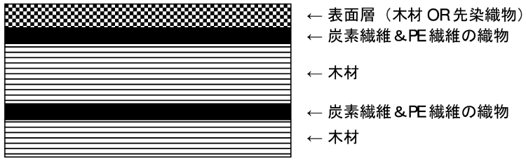 炭素繊維、木材、熱可塑性樹脂、織物、先染